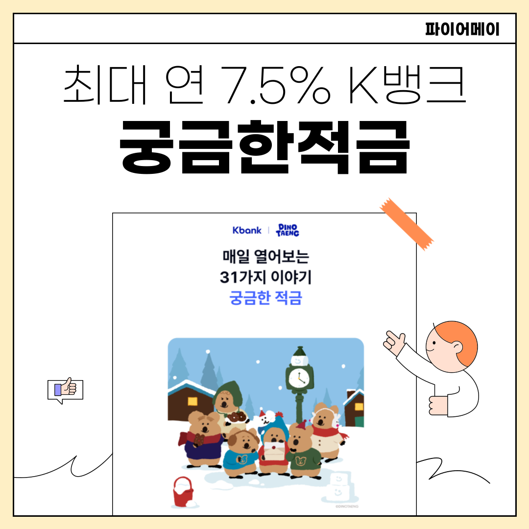 안녕하세요. 파이어메이입니다. 오늘은 이번달 출시된 케이뱅크의 궁금한 적금 이벤트 소식을 가지고 왔습니다!