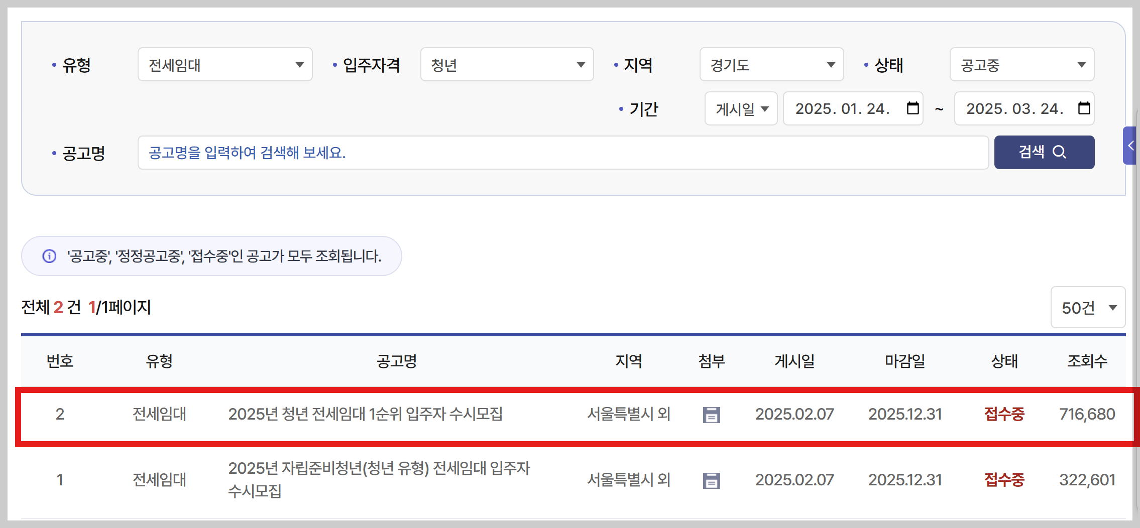 - 2순위 : 본인과 부모의 소득 및 자산이 기준을 충족하는 청년