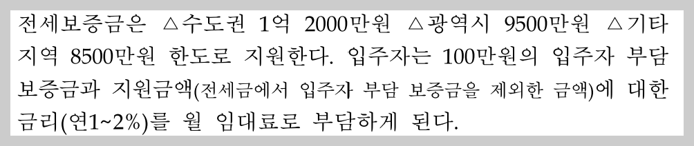 - 전용면적 85㎡ 이하 전세 또는 보증부월세로 계약 가능한 주택