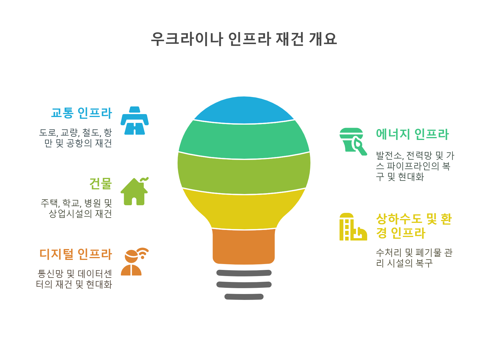 2. 에너지 인프라 : 발전소, 송배전망, 가스 파이프라인 등의 복구 및 현대화